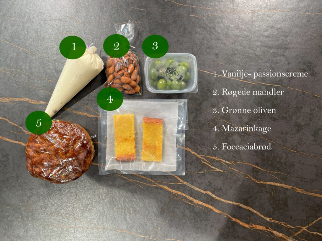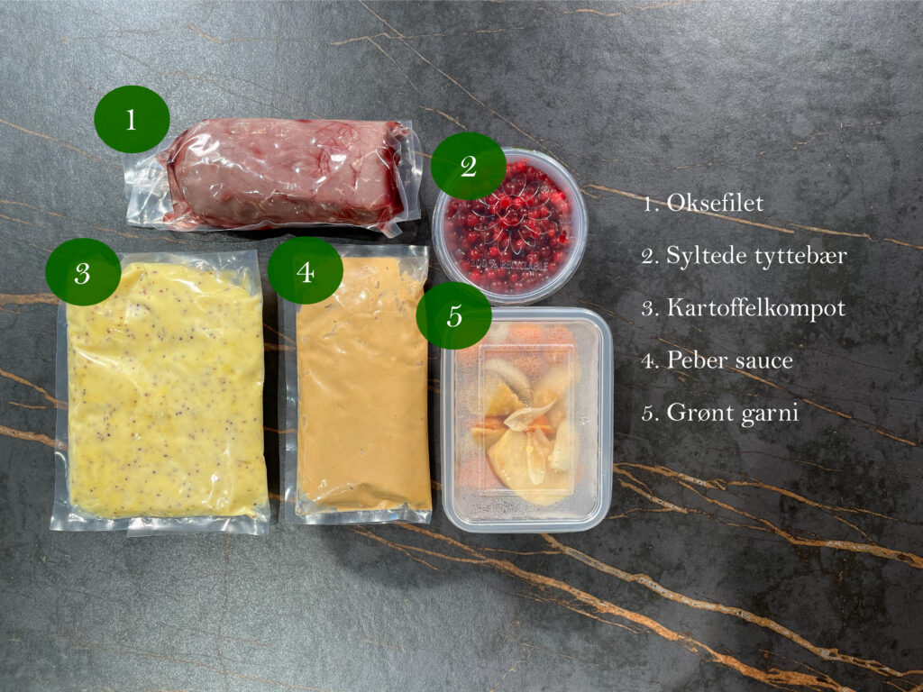 OBS: Der kan være elementer fra forskellige kasser til de forskellige retter.